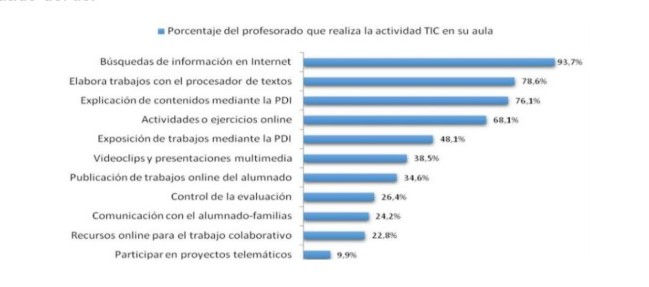 Por otro lado, un estudio realizado por la Universidad de Sevilla, evidencia que a pesar que los profesores utilizan herramientas tecnológicas, está más enfocada en la búsqueda de información más que en el uso para la comunicación y trabajo de clase, por lo tanto, aparte de fortalecer la infraestructura para la conexión digital, se debe capacitar a los docentes para el uso adecuado del tic.